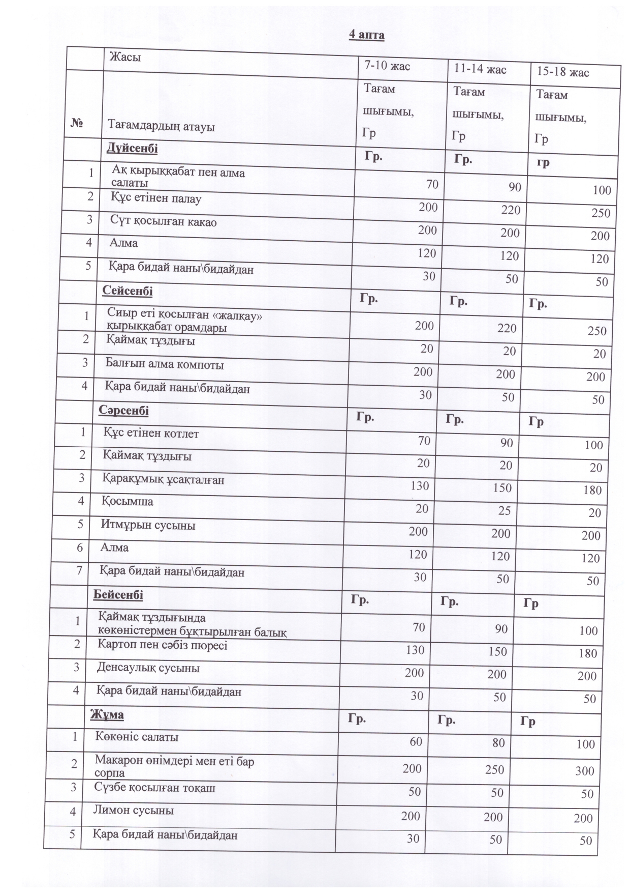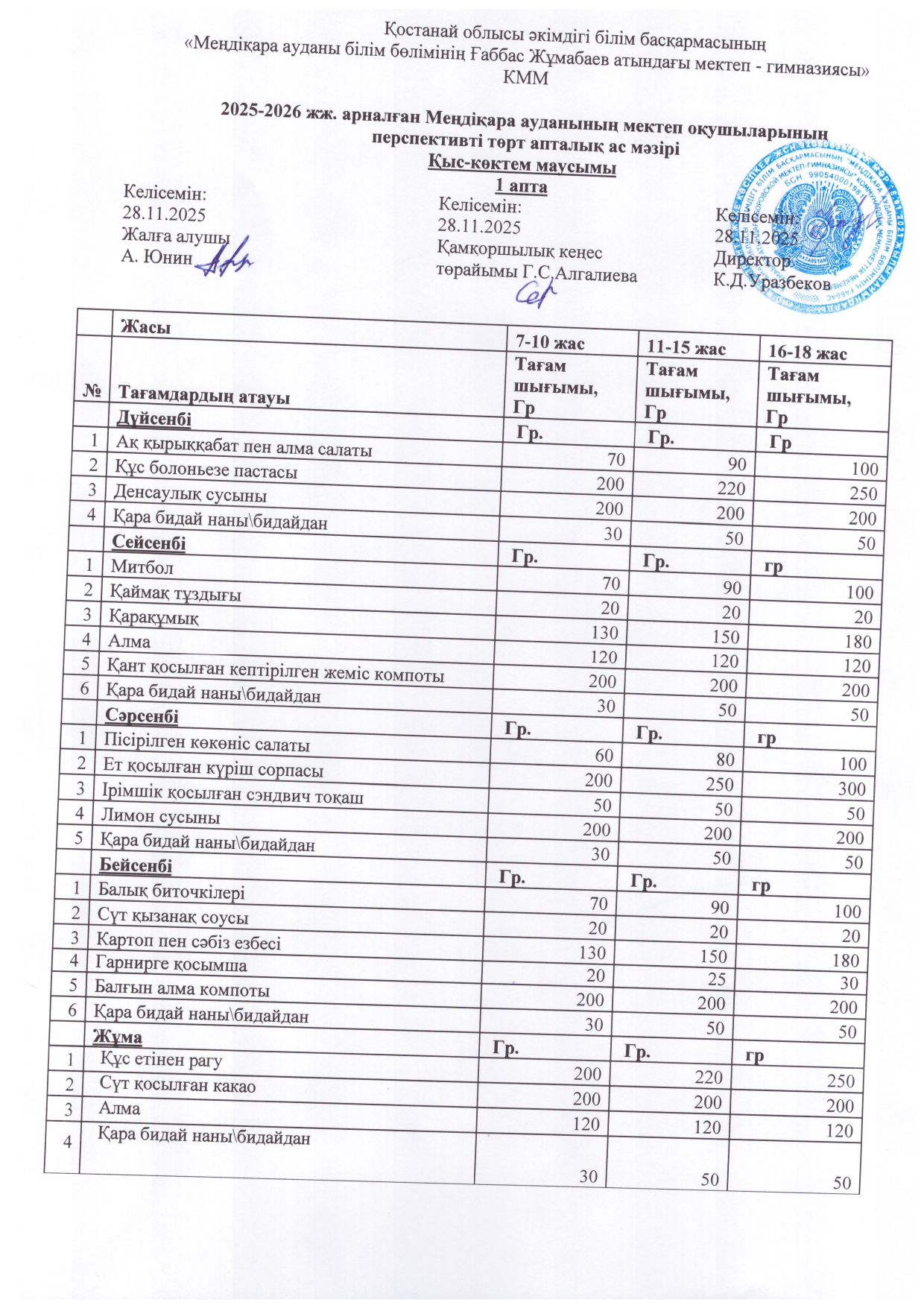2025-2026 жж. арналған Меңдіқара ауданының мектеп окушыларының перспективті апталык ас мәзіріҚыс-көктем маусымы