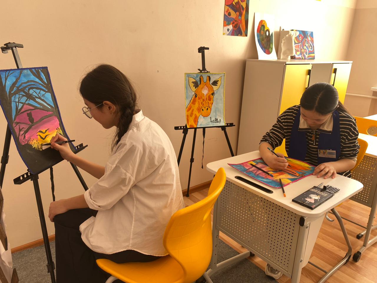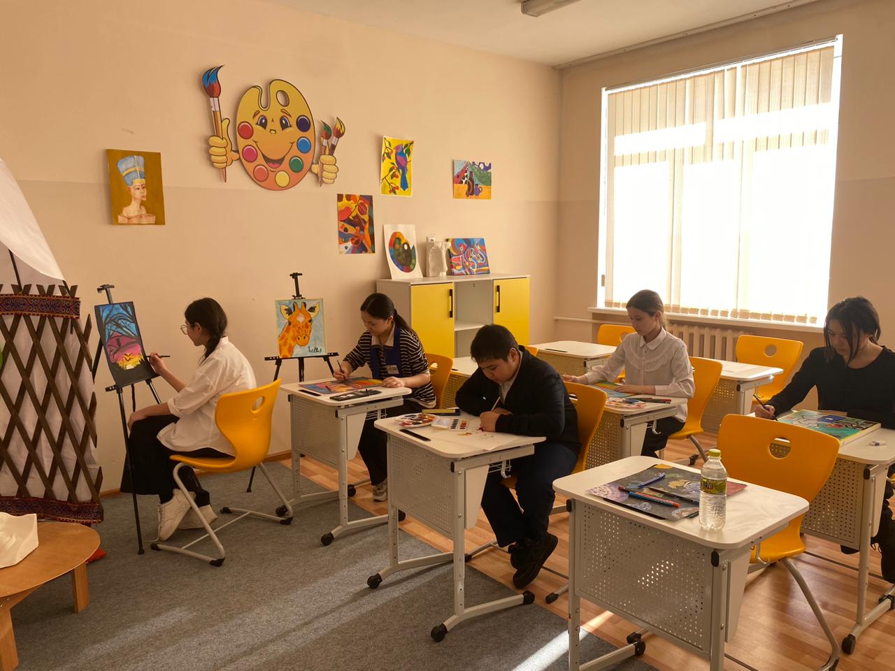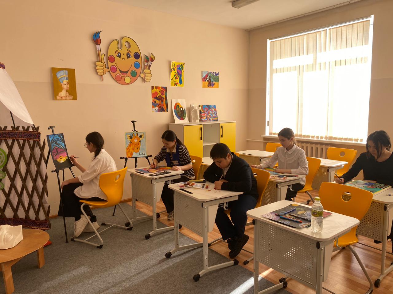 АРТ-студия бағдарламасымен «Визуалды өнер» сурет салу арқылы шығармашылыққа баулу, эстетикалық сезімталдықты дамыту, шығармашыл және жасампаз тұлғаны қалыптастыру, тұлғаның әлеуметтік және кәсіби тұрғыдан айқындалуда. Бағдарламаның мақсаты: Балаларды көркем шығармашылық қабілеттерін, зейіндерін дамыту, ой-өрісін бейнелеу өнері әлеміне бағыттап, қызығушылығын арттыру. Бағдарламаның міндеттері: - Графика туралы түсінік беру; - Сурет бойынша әңгімелету арқылы сөздік қорын дамыту, көркемдік талғамын арттыру; - Графикалық материалдармен – пастель, сангина, көмір, қарындаш, тушь, сия т.б. материалдармен жұмыс жасап үйрету; - Сурет салудың дәстүрлі және дәстүрден тыс әдіс-тәсілдері арқылы балалардың бейнелеу өнеріне деген қызығушылығын арттыру; - Сабақ кезіндегі тазалық, ұқыптылық, тәртіп ережелері мен ұжымдық бірлестікке тәрбиелеу.