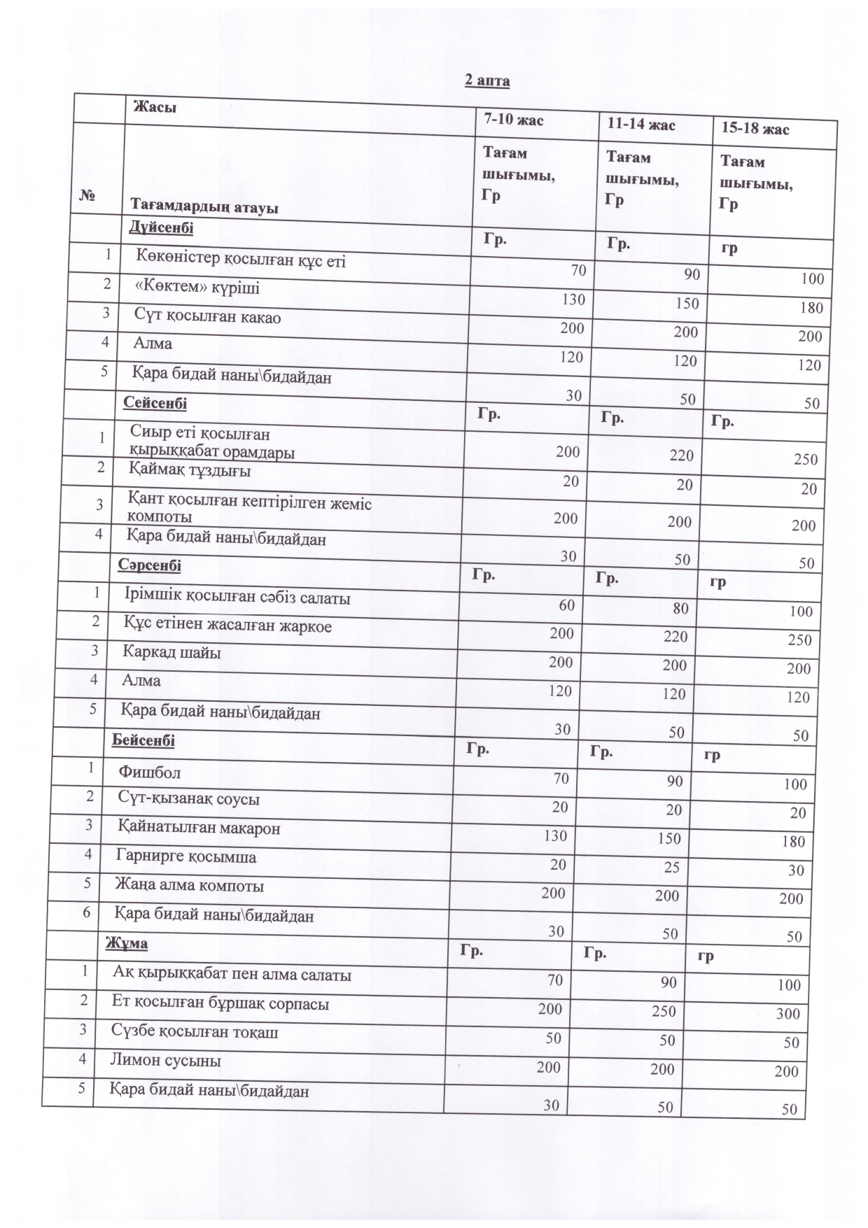 2025-2026 жж. арналған Меңдіқара ауданының мектеп окушыларының перспективті апталык ас мәзіріҚыс-көктем маусымы