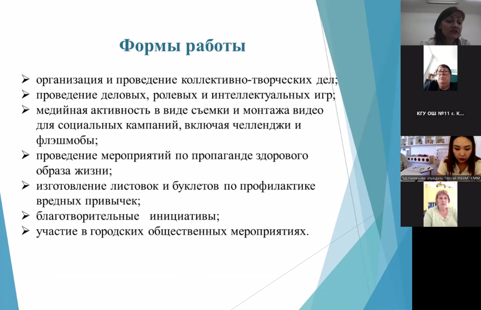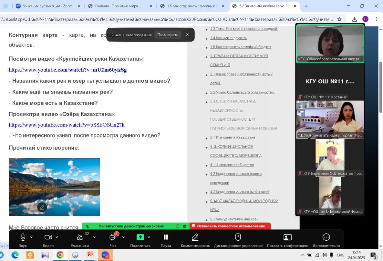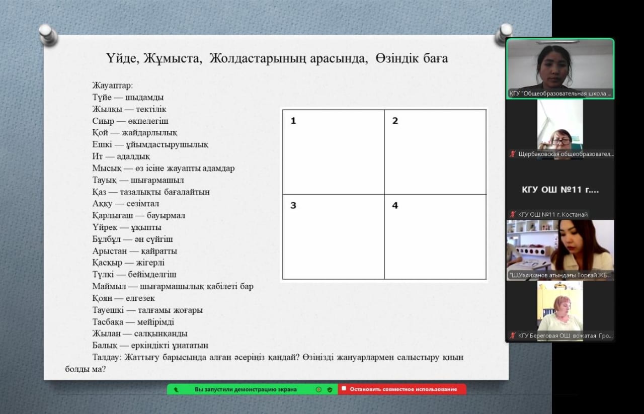 «Қостанай облысы әкімдігі білім басқармасының» КММ–нің «Оң педагогикалық тәжірибені негізінде тәжірибені тарату туралы» 16 сәуір 2025 жылғы №304 бұйрығына сәйкес 24 сәуір 2025 жылы сағат 15.00-де Қостанай облысы әкімдігі білім басқармасының «Қостанай қаласының білім бөлімі» ММ-нің әдістемелік кабинеті Қостанай облысы әкімдігі білім басқармасының «Қостанай қаласының білім бөлімінің № 11 жалпы білім беретін мектебі» КММ-мен бірлесе отырып, Ермекбаева Жансая Сейлбеккызы, информатика пәнінің мұғалімі «Жасөспірімдер олимпиадасына оқушыларды тиімді бағдарламамен дайындау» информатика пәнінен элективті курс, Роcлик Оксана Леонидовна, бастауыш сынып мұғалімі – «Дүниетануға арналған электронды 2 сынып оқу құралы» Екінші сынып оқушысының электронды көмекшісі, Сынабаева Акмарал Мусатраковна, педагог-психолог - «Өзіңді тани біл» 5-7 сынып оқушыларына арналған психологиялық – дамытушылық бағытындағы бағдарлама, Жунусова Марина Яковлевна, қосымша білім беру педагогы – «Жақсылық жаса» мектеп еріктілер қозғалысының бағдарламасы, Кожубаева А.Ж., Суинбекова А.Т., тарих пәнінің мұғалімдері - «XX ғасырдың басы мен Тәуелсіздік алғанға дейінгі Қазақстан тарихы вариативтік компоненті бойынша Қазақстан тарихы пәнінен 9 сыныпқа арналған қосымша курс бағдарламасынан мұғалімдерге қысқа мерзімді сабақтар жоспарының жинағы».