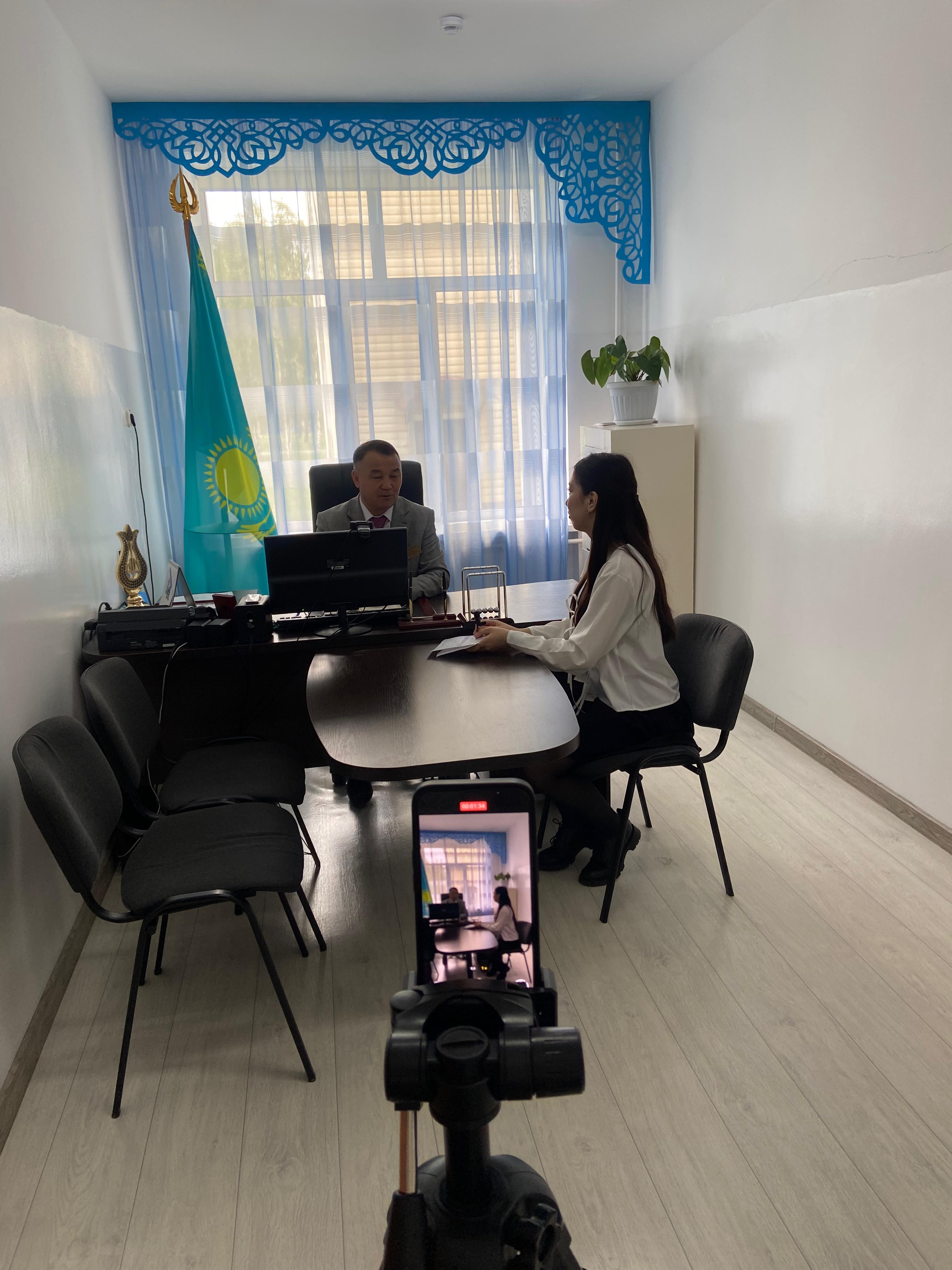 Оқу жылының аяқталуына орай телестудия үйірмесінің жас тілшісі Аманжолова Меруерт мектеп директоры Уразбеков Кемер Дамирұлымен сұхбат жүргізіп, бір жыл бойы атқарылған жұмыстар мен жеткен жетістіктер туралы толық мәлімет алды